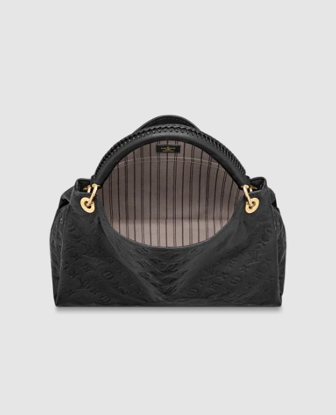 The Artsy MM handbag delights with its refined craftsmanship and functional features. Fashioned from supple Monogram Empreinte embossed leather, this quietly luxurious hobo features a handmade, cross-stitched handle that slips easily over the shoulder. Beautifully detailed with gleaming golden hardware (note the engraved eyelets, D-ring and key holder), it opens to reveal a roomy, well-organized interior.