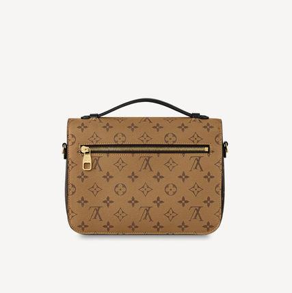 With its distinctive satchel silhouette. the Pochette M??tis bag has become an object of fashion desire. This compact. go-everywhere model in trendy Monogram Reverse canvas features a signature S-lock closure with a gleaming gold-tone finish. Versatile and surprisingly roomy. it is fitted with a chic top handle and a long removable strap for shoulder or cross-body wear.