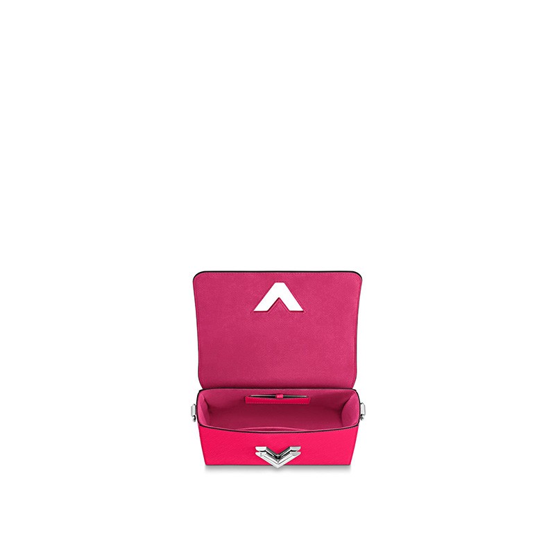 Transforming a classic bag into something bold and colorful for Summer 2020. Louis Vuitton fashions the Twist MM in deep-dyed Epi leather with a colored plexiglass top handle and bright-colored nametag and charm. Accented by the classic LV Twist lock. the sheer top handle is associated with a removable leather strap for allow added carrying options.