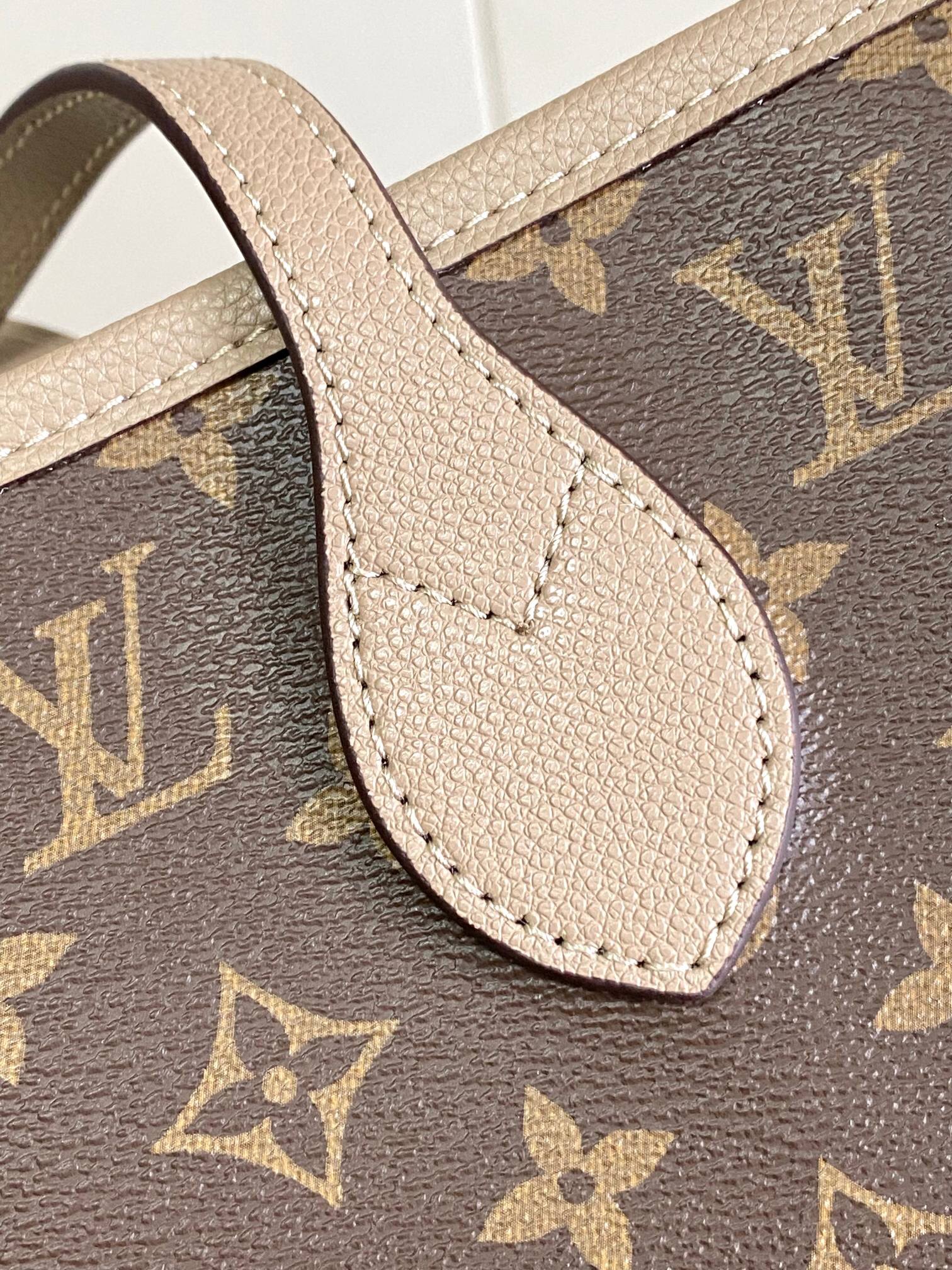 The Neverfull MM tote unites timeless design with heritage details. Made from supple Monogram canvas with natural cowhide trim, it is roomy yet not bulky, with side laces that cinch for a sleek allure or loosen for a casual look. Slim, comfortable handles slip easily over the shoulder or arm. Lined in colorful textile, it features a removable pouch which can be used as a clutch or an extra pocket.