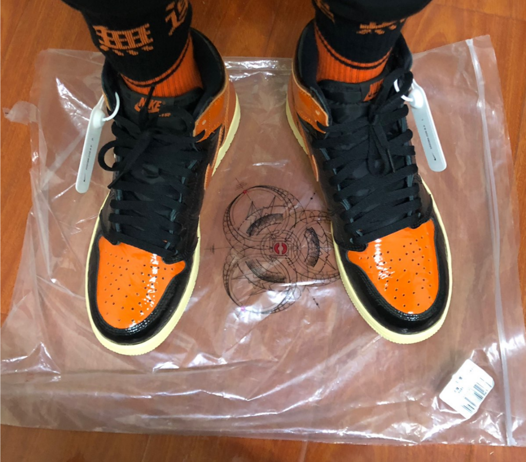 This newest installment in the SBB series differs from the previous three in material. The design is comprised of a black and orange crinkled patent leather upper to represent the shattered glass. A yellowed vanilla mid and outsold complete the design. These sneakers released in October of 2019 and retailed for $160.