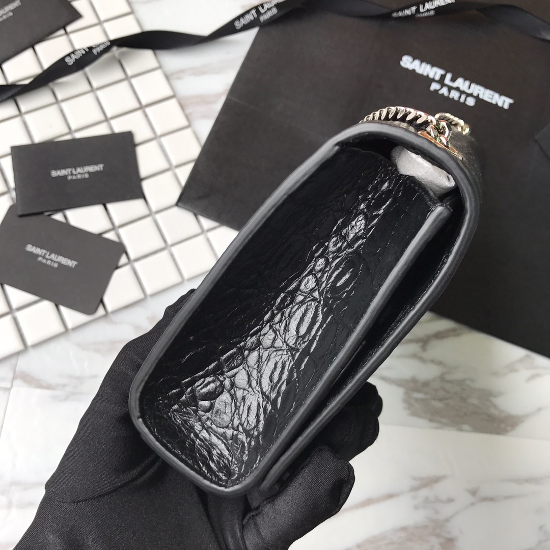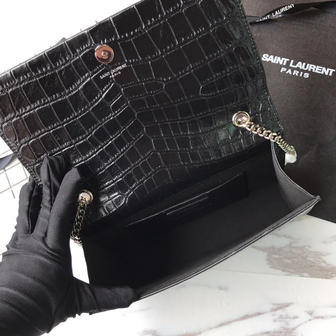 MONOGRAM CHAIN WALLET IN CROCODILE EMBOSSED SHINY LEATHER